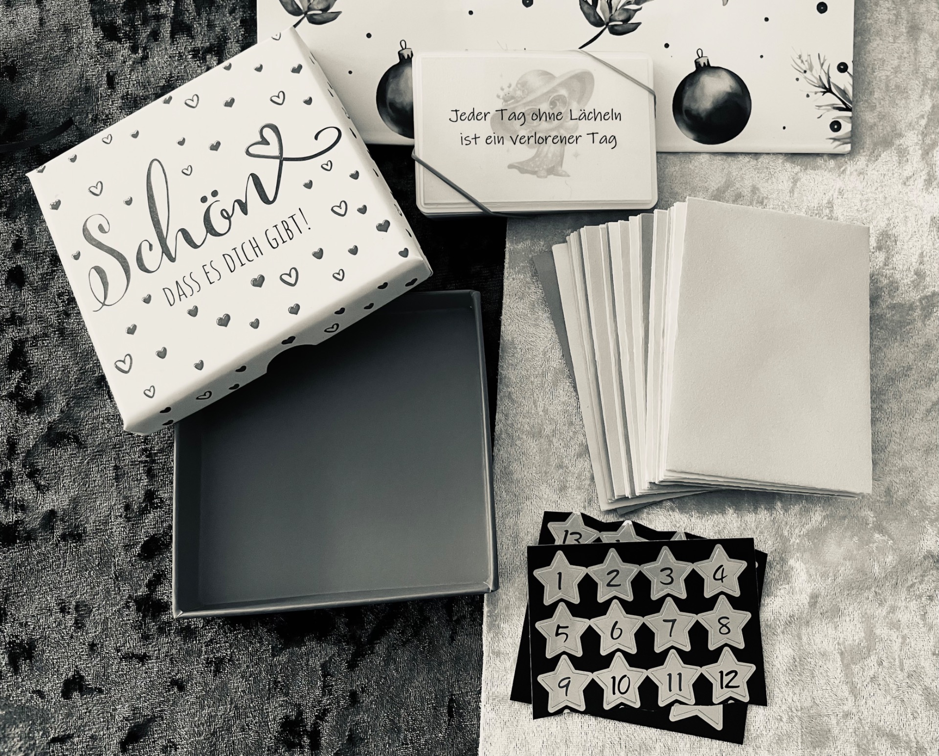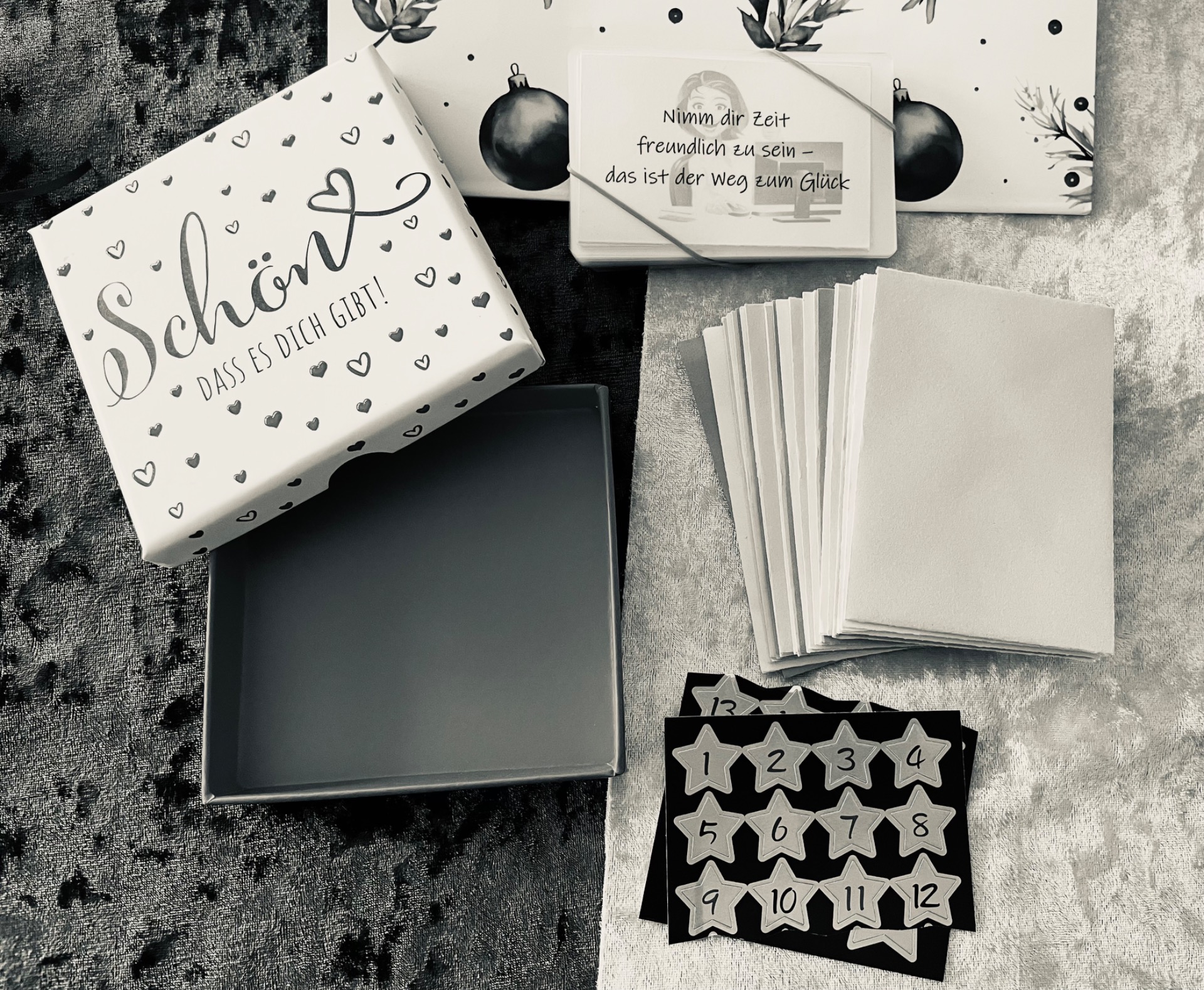 Du erhältst hier 24 Kärtchen (+1 Bonuskarte) liebevoll verpackt und mit jeweils einem Spruch für den Tag versehen - du kannst außerdem zwischen zwei Versionen wählen: "Lebensweisheiten & Motivation" oder/und "Gelassenheit & Ruhe". Durch seine geringe Größe ist er optimal auch für jene die nur wenig Platz haben. Ein weiterer Vorteil ist dass sich dieser Adventkalender nicht auf Deine Figur auswirkt ;)