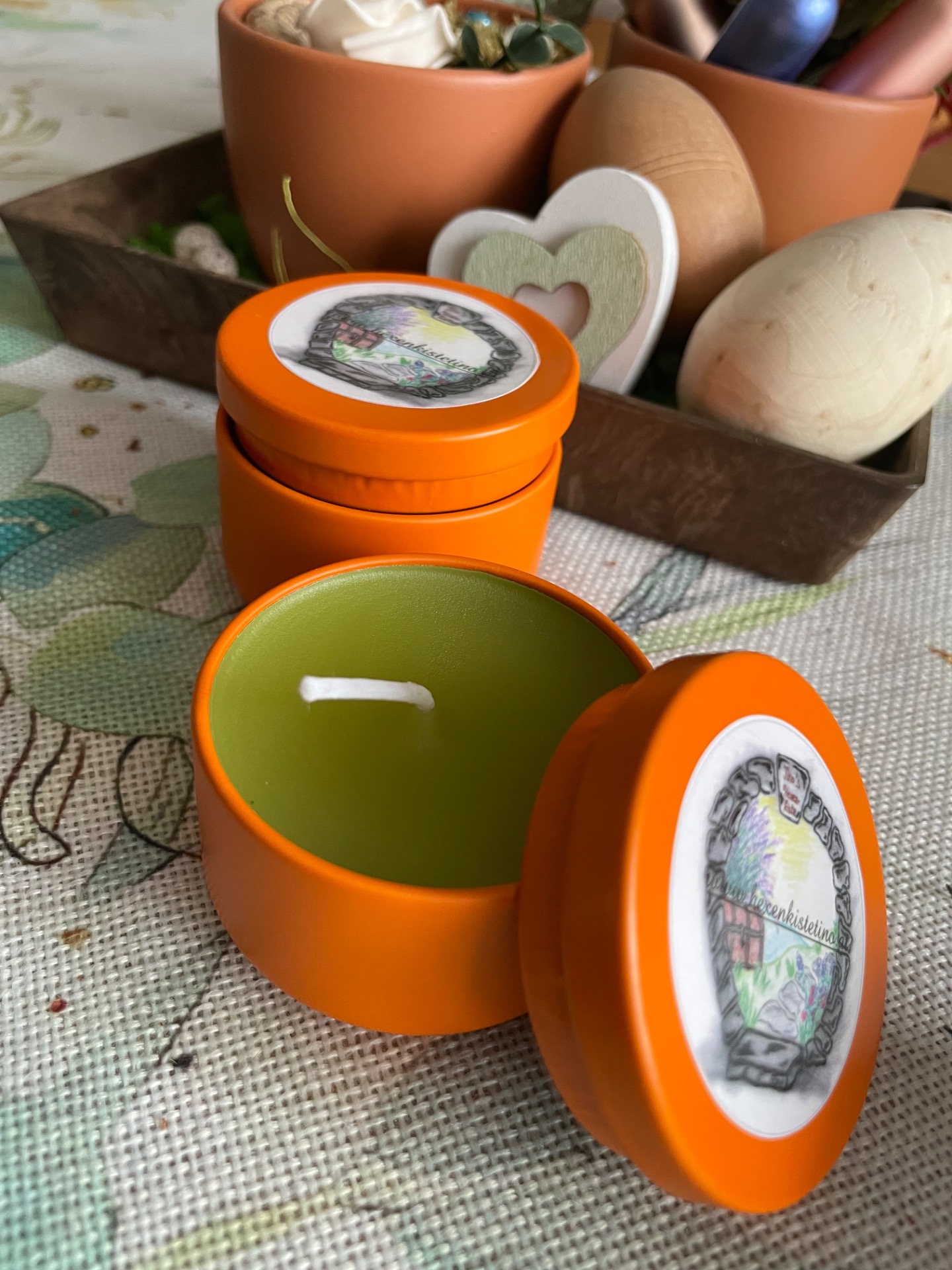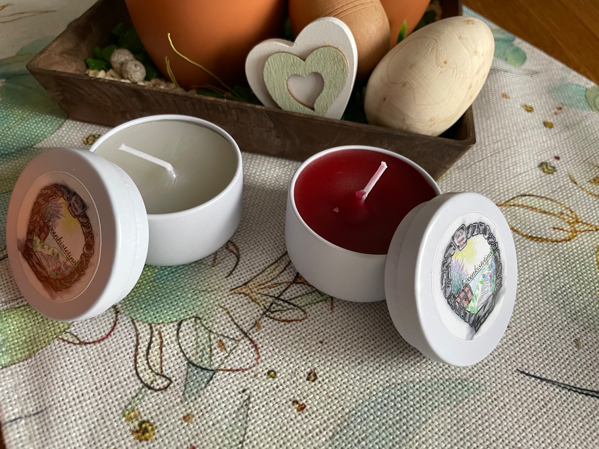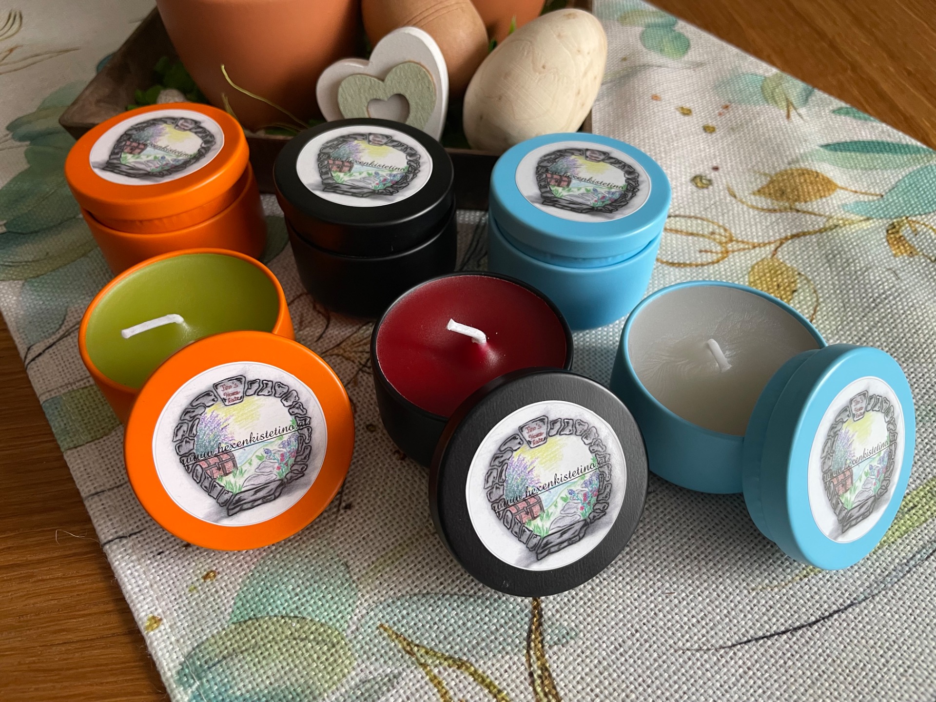 In bunten Farben kannst du hier neue Blechdosen erstehen - gefüllt sind diese mit recyceltem und beduftetem Kerzenwachs (leider diesmal etwas zu voll geworden ;P aber das macht ja nichts oder?).