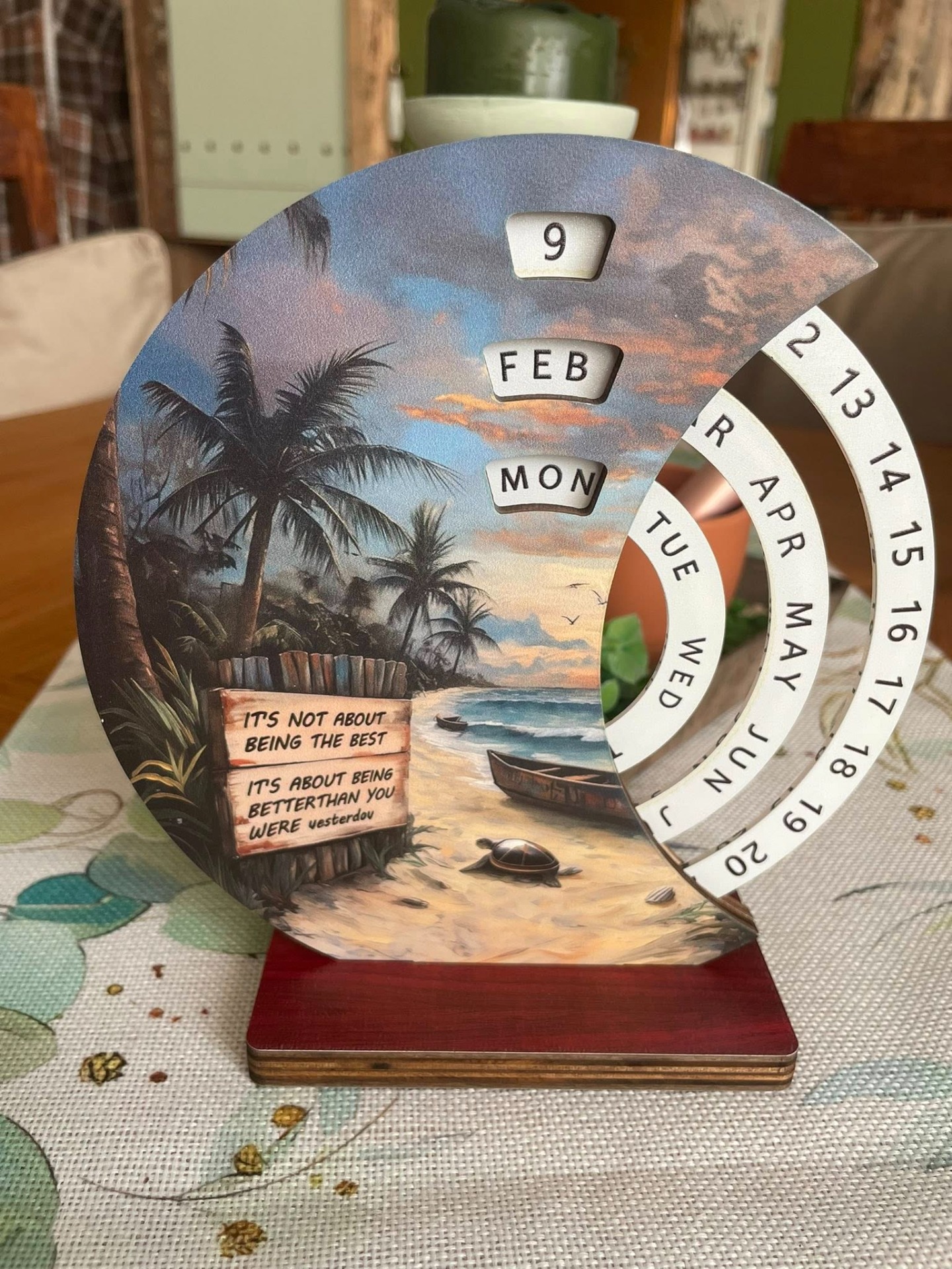 Der praktische, immerwährende Dreh-Kalender aus Holz ist in verschiedenen, wunderschönen Motiven erhältlich und man hat so zusätzlich zum Kalender auch noch ein tolles Bild stehen - ob auf dem Schreibtisch zu Hause oder im Büro ist dieses besondere Schmuckstück bestimmt DER Hingucker ;)