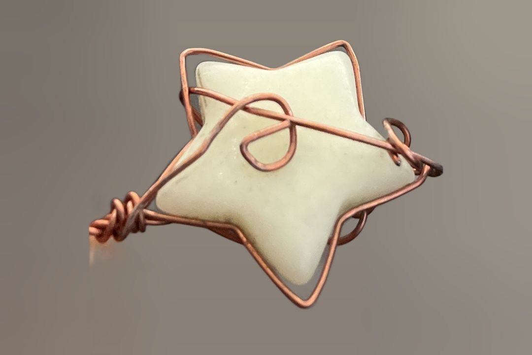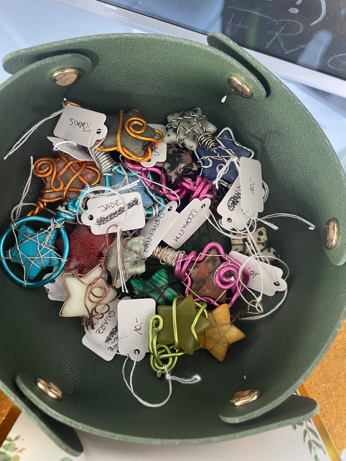 verschiedene Heilsteine in Sternform - von mir in färbigen Draht eingefasst damit du ihn Stilvoll immer dabei hast ;)
