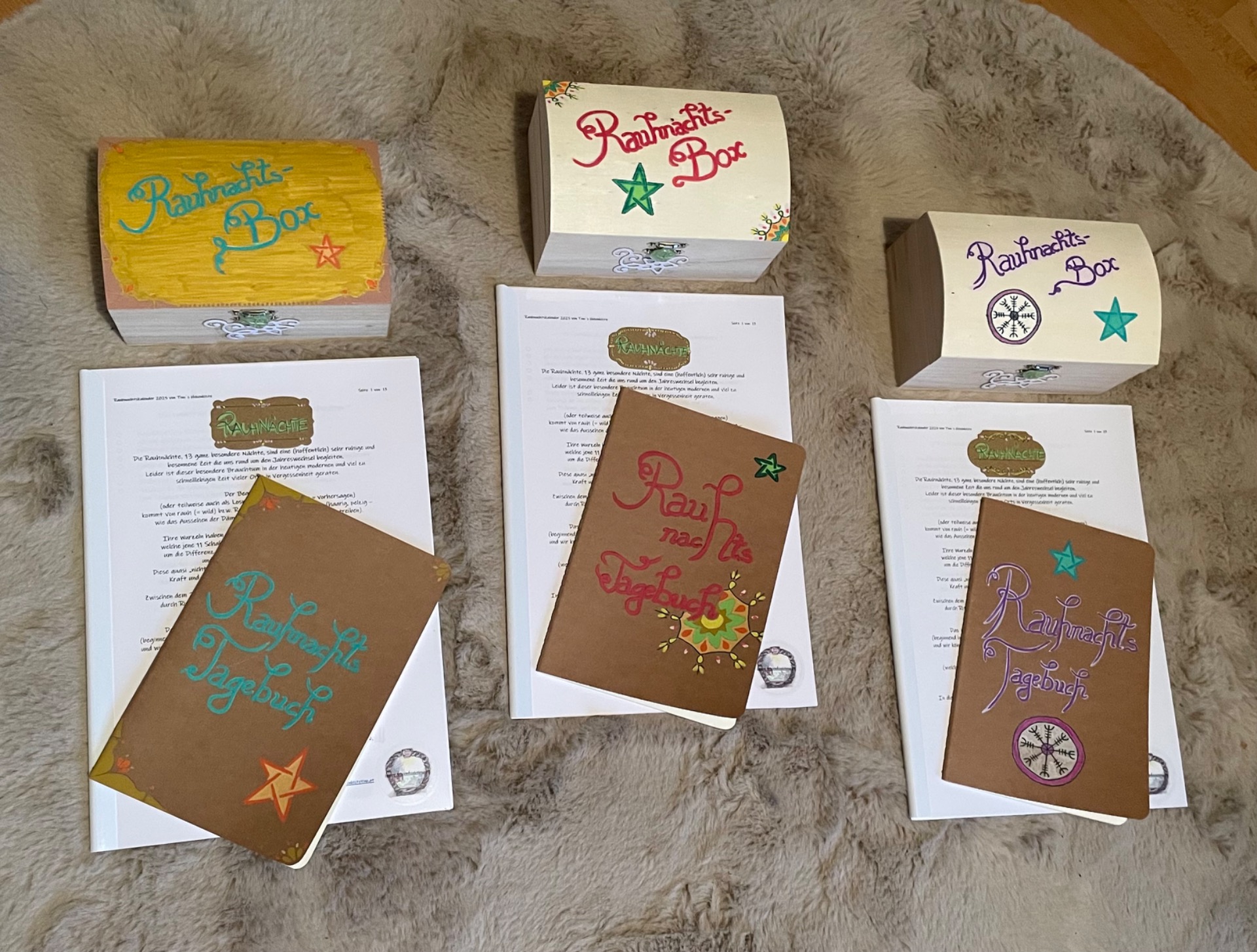 Die Rauhnachts-Box wurde von mir hübsch verziert und sorgfältig und mit viel Liebe zusammengestellt um dich während der Rauhnächte so breitgefächert wie möglich zu leiten und zu unterstützen .